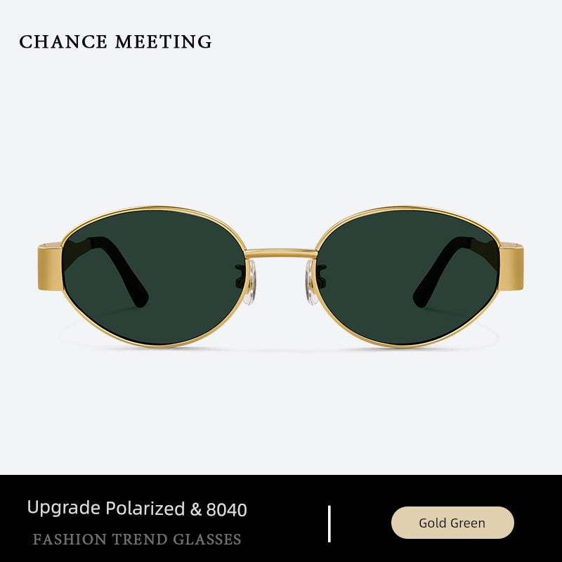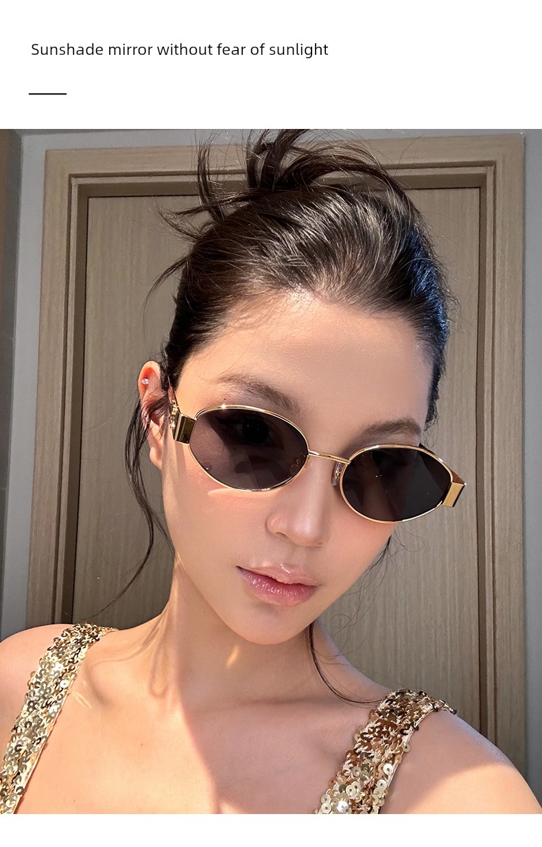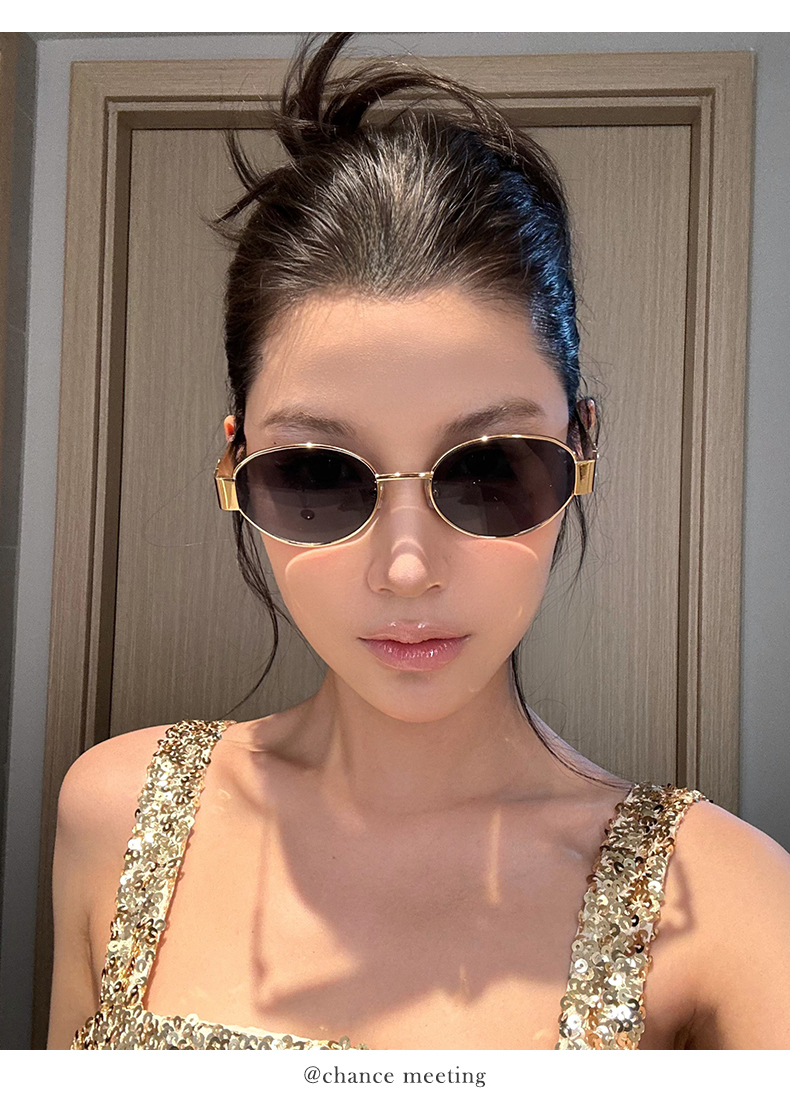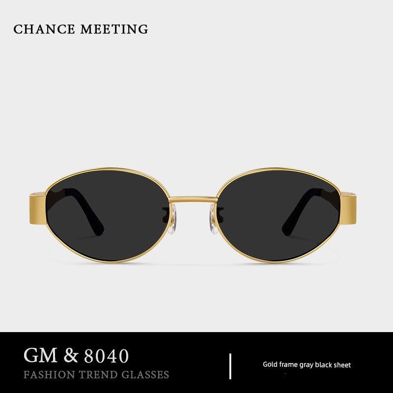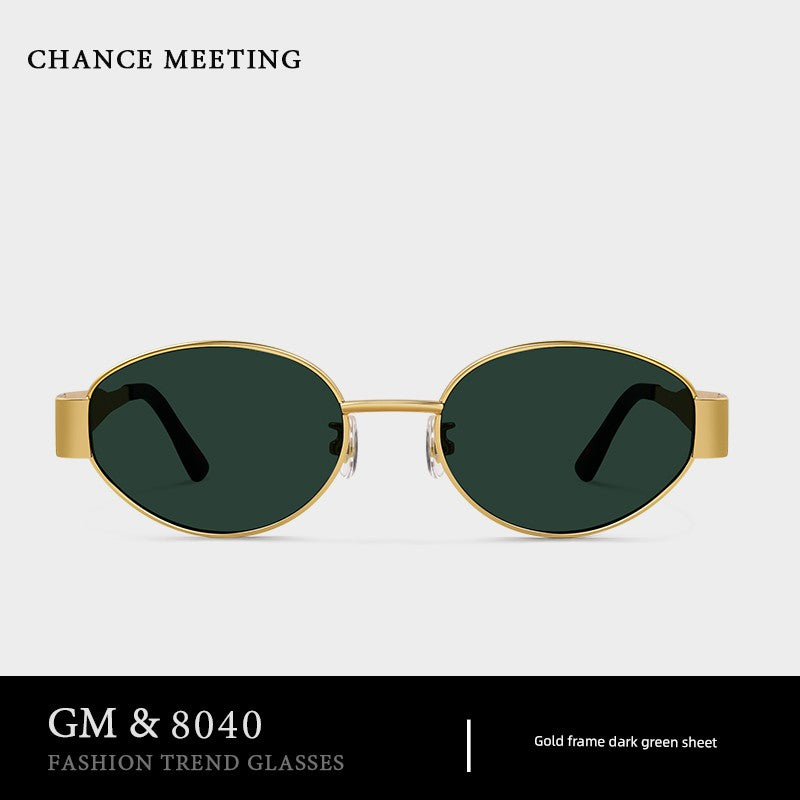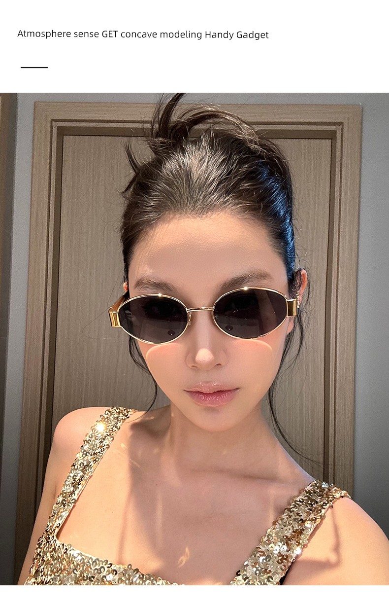 Óculos de sol ovais de metal estilo antigo Qian retrô, proteção solar feminina, armação pequena sofisticada, estilo Hong Kong, formato côncavo