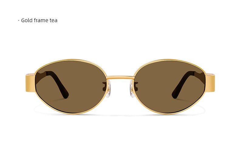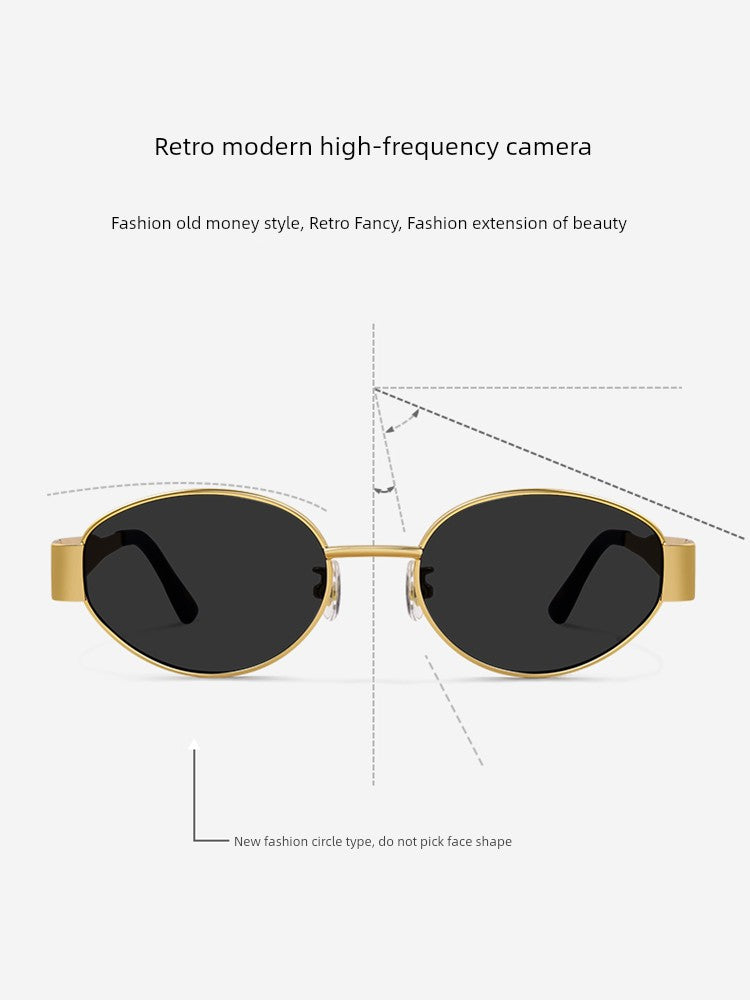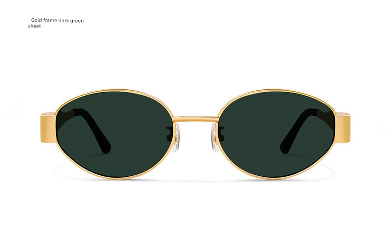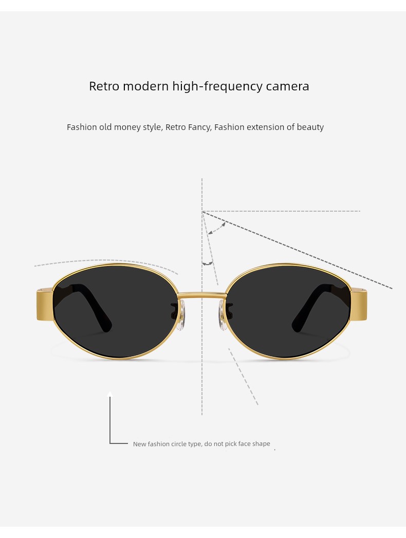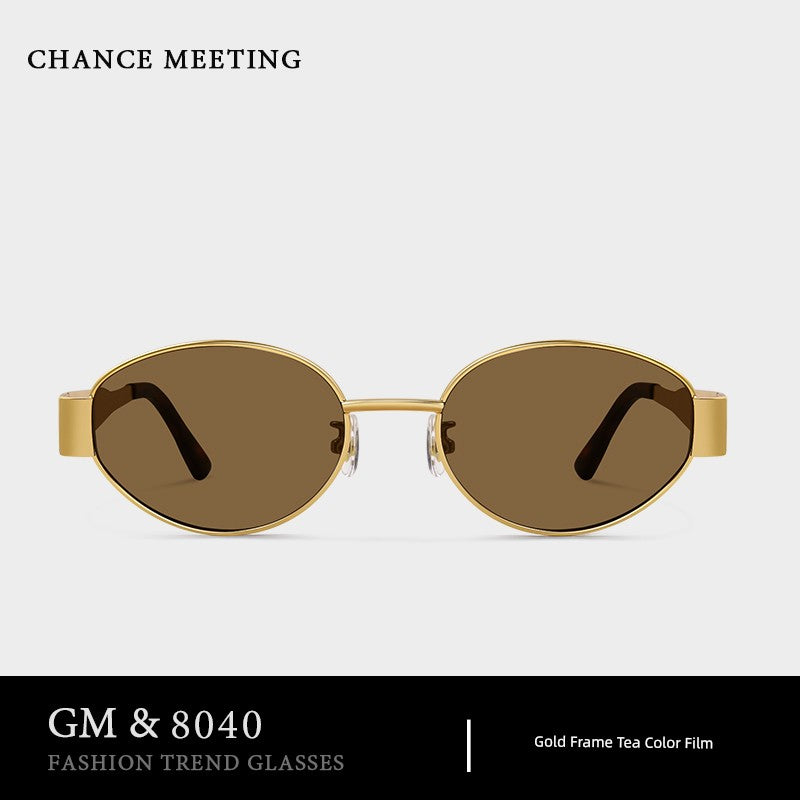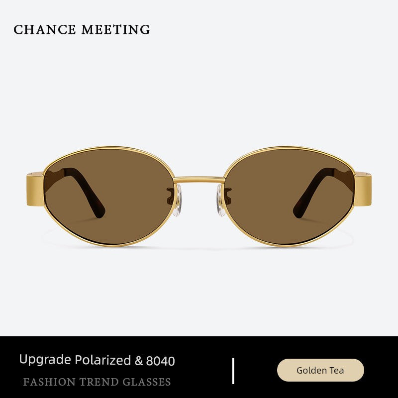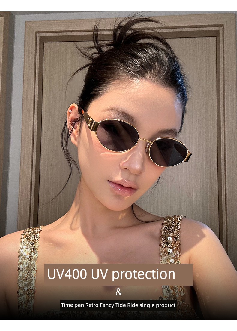 Óculos de sol ovais de metal estilo antigo Qian retrô, proteção solar feminina, armação pequena sofisticada, estilo Hong Kong, formato côncavo